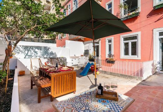 Come and visit Lisbon and stay in an apartment with two bedrooms and garden with lounge area and swimming pool. an apartment in the neighborhood of Alcântara where people live calmly and happily. A 5-minute walk from the well-known Lx Factory, where you can stroll, dine, listen to music, shop or simply have a beer. A 10-minute tram ride from the world-renowned Jerónimos Monastery monument and Belém tower.About pets:No pets allowed.About checkOut:Check out before 11:00 AM.About children:Children allowed: ages 0-17.About checkIn:Check in after 4:00 PM.About smoking:Smoking is not permitted.About minBookingAge:Minimum age to rent: 20.About events:No events allowed.