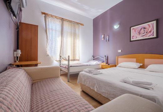 Average hotel in the historical center. A few steps to Hadrian's Gate and other attractions. The room has everything you need. Excellent inner garden and a gorgeous balcony. The plumbing is not new, but everything works. The manager checked us in and gave us the keys. It will do for a few days. Not for lovers of luxury, but rather for those who do not attach importance to a place to stay.