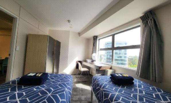 Traveling with family, an apartment was more convenient. As long as your expectations aren't too high, Imperial Apartments definitely offer good value for money. It's actually student accommodation, so there are quite a few students around. It's near Queen Street, about a 20-minute walk, but it's uphill, which can be tiring. Downstairs, there's a home-style Chinese restaurant, a burger joint, and a small supermarket. The facilities are a bit old, and apparently, it's run by Chinese business people; all the front desk staff are Chinese, which made communication easy. Also, the mattress was soft, and the pillows were soft too, which I'm not really used to.