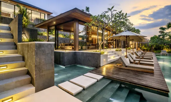 Welcome to Villa Noor, a spacious 6-bedroom retreat in Mas, Ubud. Overlooking rice fields and jungle, this three-level villa offers a large infinity pool with 12 sunbeds, perfect for families and groups. Each bedroom is designed for comfort and privacy. The open-plan living space includes a full kitchen, kitchen island, and dining table for ten. Located near galleries, restaurants, and Sumampan Waterfall, the villa connects modern ease with Bali’s cultural charm. Daily housekeeping, pool, and garden care included. This villa accommodates 12 guests, but can host up to 14 with an additional charge for the 13th and 14th guests.