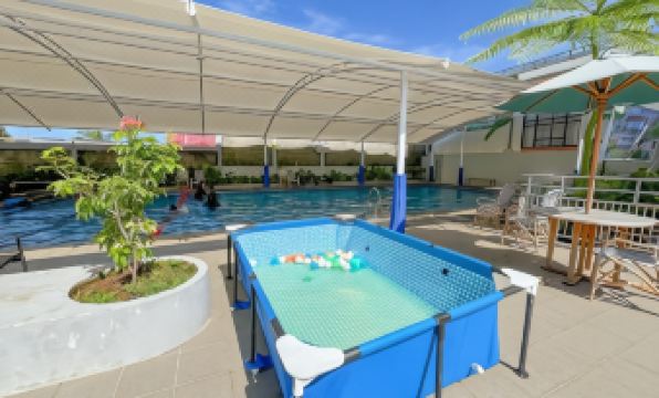 Saya senang menginap dsini smua bagus,,, tp saya kecewa wkt di wahana air anak,,, anak sya dibentak sm mas2 yg bersihkan kolam,, krn blum boleh dipake,,,
