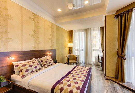 An excellent hotel in the city center. Large rooms, excellent WiFi. The hotel's airport shuttle is very convenient—just 1,500 som in a large minibus, with bottles of water provided after a long flight. There are plenty of cafes, banks, shops, and other amenities nearby.
