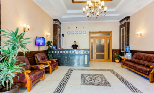 New, clean hotel, conveniently located, all the necessary infrastructure nearby (shopping center, exchange offices, coffee shop, fruit shops, bus stop), you can have a hearty breakfast in the hotel restaurant (cost about 300 soms)