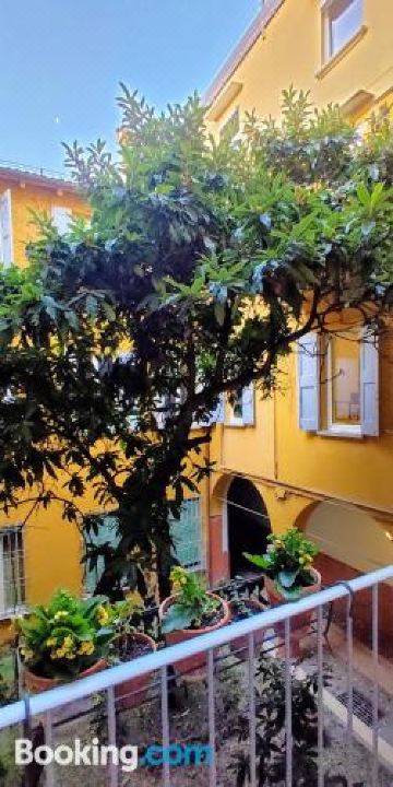 Maria is a wonderfully friendly and helpful host. Excellent tea and coffee facilities, fruit and biscuits available in the common area of the apartment. Breakfasts of coffee juice yoghurt cornetto and ham & cheese toastie included at a nearby cafe. The B&B is about 700m from the centre of town (Piazza Maggiore) in the university part of town. Lots of coffee shops and restaurants nearby and a supermarket. Only downsides for us were no mini fridge in room or power outlets at the bedside for charging devices, and some might miss not having a TV in the room.