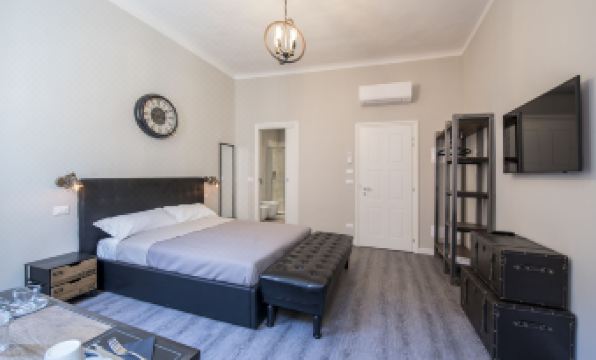 10 minute walk to plaza Maggiore This B and B accommodation is simply a great stay Delightful heritage property which is decorated very tastefully with industrial design- we loved that Great showers! Great restaurants and bars on door step Lovely interior design of large rooms with high ceilings TV has netflix ! Breakfast is great too: all laid out in room with nespresso with well stocked fridge You can leave luggage after checking out if your flight later! The door opening and check in was super easy: all done on phone Communication with owner was faultless I would stay again Thank you to owner Grazie Mille