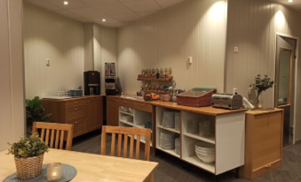 This was a lovely room in a very nice hotel. We had a family room with a kitchenette and there were 3 supermarkets plus the vinmonopolet within a ten minute walk, so perfect for self catering. The room was nicely and comfortably furnished for two. It looked better than the website photos. The bathroom was very nice and there was no storage in the bedroom, but a reasonable amount just inside the door to the room. Breakfast was excellent and the two days we stayed, there were cooked items which was unexpected. The selection of foods was very good for a small hotel and everything was fresh and kept topped up. There was tea and coffee available in the hall plus extra towels and a large fridge for those without a kitchenette in their room. We extended our one night stay to two. Highly recommended, although had there been four of us in the room it wouldn't have been so comfotable.
