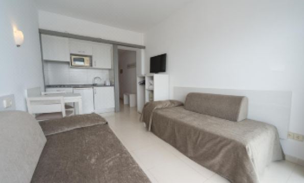 Stopped here for a few days on the last part of our holiday. The room was very spacious with x2 small double beds and sofa bed. The kitchen was also large and had everything you needed to prepare meals if you wanted. The view from the balcony was great with a view of the long sweeping bay, amazing sunsets in the evening. Outside you had a spar/deli below and to the left and around the corner loads of restaurants that carries on all the way to S'Arenal if you wanted an hours walk. This is definitely a quieter family resort but very nice for a chilled break. Bonus was the airport was 10 minutes away/17 euro taxi.