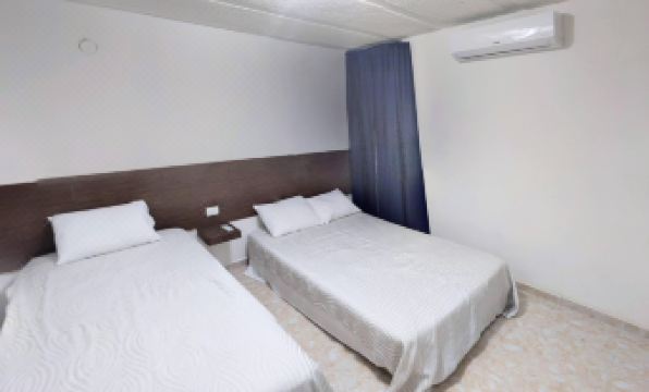 2 bedrooms: 1 single bed 1 queen bed and 1 double bed