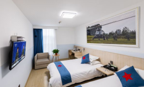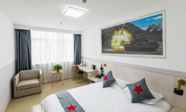 The hotel is situated in the heart of Chao Lake City, at the intersection of the bustling People's Road and the historically significant Military District Road, showcasing the unique charm of the vast lake. With a thriving commercial district and convenient transportation, you can easily explore nearby shopping and entertainment venues, fully embracing the vibrancy and convenience of the city. The hotel's design blends military elements and national defense concepts, creating an atmosphere of strength and confidence. From meticulously planned room layouts to carefully crafted facilities, your stay will be characterized by a strong sense of belonging and honor.