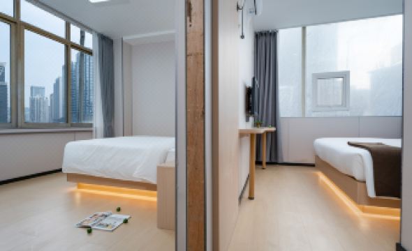 房間更是沒話説,一進門就感覺特別乾淨,床單被罩帶着淡淡的清香,桌面、衞生間角落都沒一絲灰塵,打掃得超細緻。暖黃色的燈光搭配柔軟的抱枕,瞬間消解了旅途疲憊,像臨時的小家一樣温馨。服務也很貼心,有需求響應特別快,下次來這座城市肯定還選這裏!