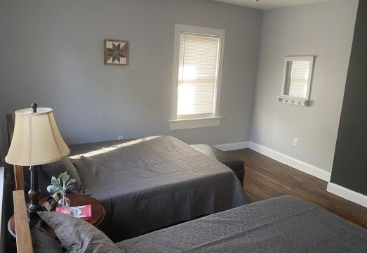 2 bedrooms: 2 single beds 2 queen beds and 1 double bed