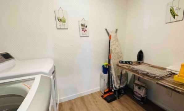 The house features a dedicated laundry room with a washer and dryer, ensuring your stay remains effortless.