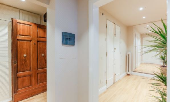 This property is a typical European hotel setup. It’s in a shared building with other tenants. Very clean, the staff was excellent, very caring. Checked in on us to make sure we had everything we needed. The rooms were spacious. I asked for a double bed and separate bed for my daughter, there was a separate room with a single bed and closet that was very spacious. I highly recommend this hotel and staff.