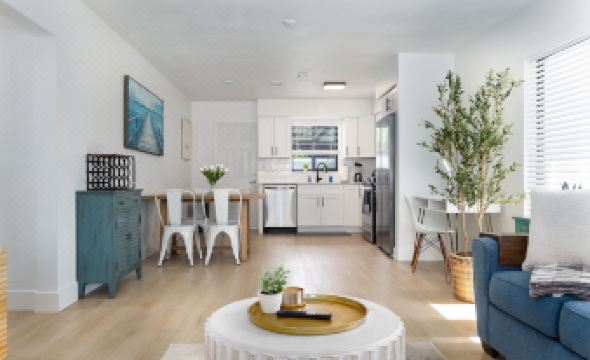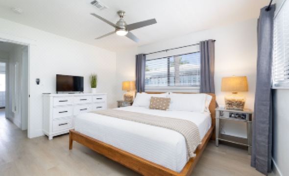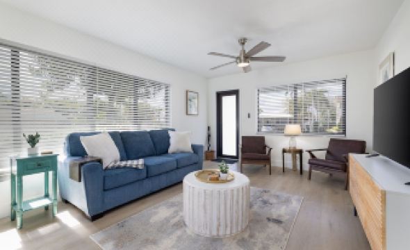 Completely updated, inside and out. Brand new 1,500 square foot PRIVATE backyard with patio, putting green, and BBQ Grill. Tastefully designed interior with fully equipped kitchen, 2 bed, 2 bath, 2 parking spaces. Large flat screen smart TV and WiFi. Very close to the beach and around the corner from tons of restaurants, shopping, and entertainment (Target and Publix are a short walk). Beach is 1.3 miles away. Complimentary use of beach chairs and umbrella (please request in advance).About pets:No pets allowed.About checkOut:Check out before 10:00 AM.About children:Children allowed: ages 0-17.About checkIn:Check in after 4:00 PM.About smoking:Smoking is not permitted.About minBookingAge:Minimum age to rent: 25.About events:No events allowed.