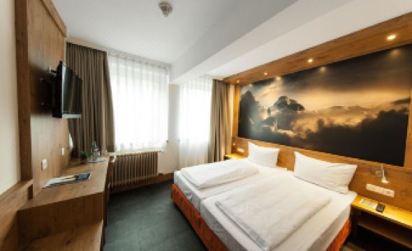 A good hotel in the best location in Frankfurt. Close to the river and the city center by the "New-old town". Everything you need is within reach. The room could do with a little update and better chair/chairs for comfort in the room. But what is most important is that the beds and bedding were comfortable and good. A bit old-fashioned but the location and breakfast made up for it. On the first floor there is a good and lively restaurant with great German food and great service. All this together makes this place a little gem in the center of Frankfurt.