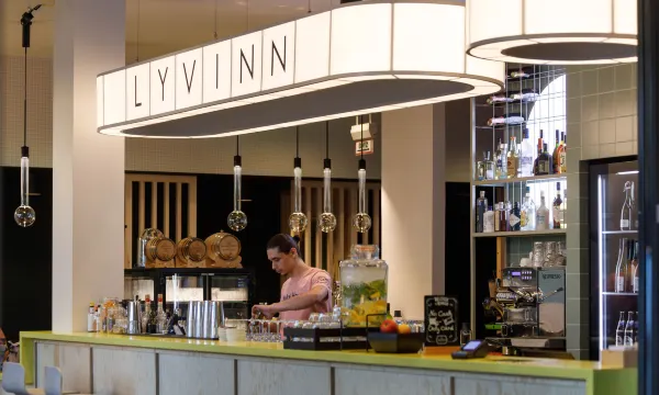 At LyvInn, you can expect: Breakfast, delicious food, onsite bar, co-working with a feel-good atmosphere, high-speed WiFi, 24-hour reception, and the option to bring your dog.