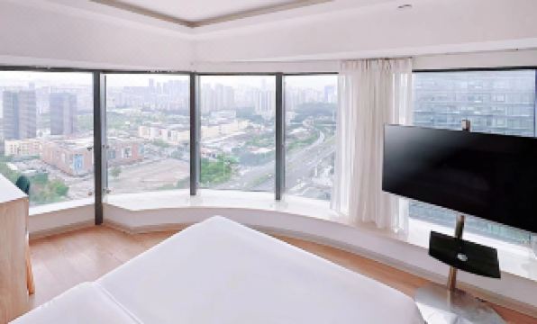 180-Degree Panoramic Room With Floor-to-Ceiling Windows And High-Floor Night View (With Washing Machine)
