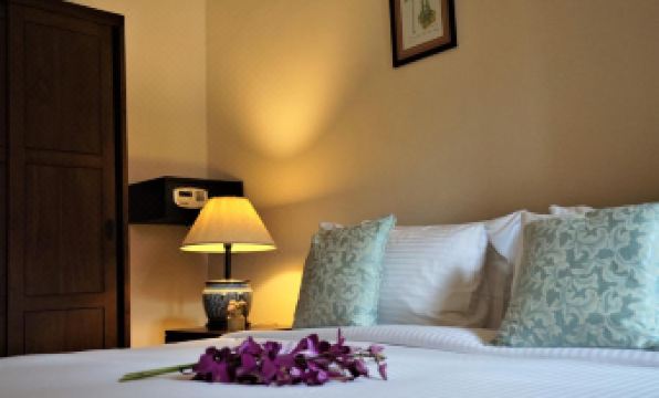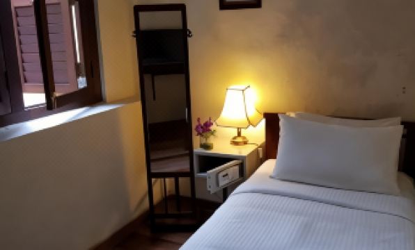 We saw the good reviews but were still pleasantly surprised by how wonderful this lodge is! We stayed in the Frangipani room with two single beds. It was small but had everything we needed and was very clean. The AC worked very well. The street is not touristy and overall was quiet but had several places to eat across the street for breakfast/lunch. We booked directly on their website which I highly recommend for the best value, and they even included a small breakfast with local toast and jam, and tea. Every afternoon we came back to rest and they gave us tea and a sweet treat. Such a special place.