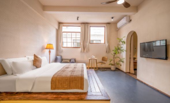 Deep Soak Tub Double Bed Room (Brand Custom Bedding + Intelligent Bathroom + Tea Break Table + Ambient Lighting)