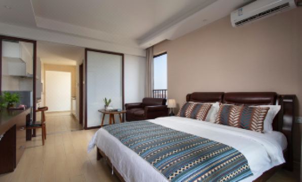 The hotel is really nice! Airport pick-up was arranged, and there were cute shell bracelets for sale at the front desk. I couldn't help but buy one for my sister and I. The layout of the room is simple and fresh, with complete facilities including a washing machine and a refrigerator. It is clean and hygienic. It is a satisfactory stay. The bedding is comfortable and I feel like I am living at home. There is also a security guard on duty 24 hours a day downstairs, which gives us a full sense of security. The front desk staff is really gentle. Because it was raining, they even held an umbrella to send us to the car. It was really thoughtful. I will come again next time!