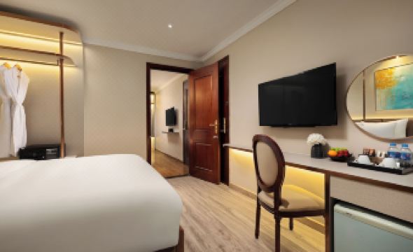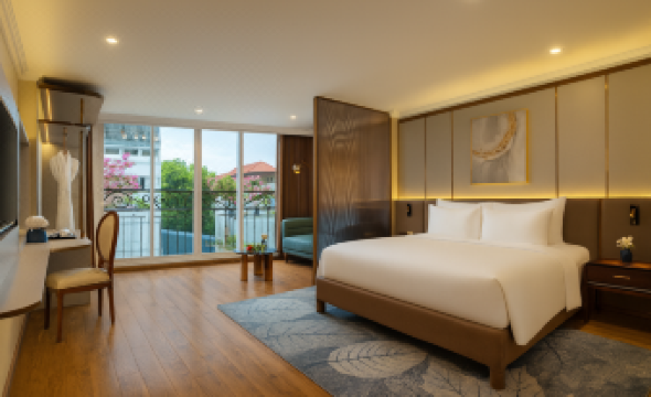 The hotel has an indoor swimming pool and a spa service in the basement, and it located in the heart of the Old Quarter, just 2mins walk to Hoan Kiem lake, which is very convenient.
