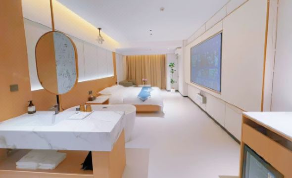This hotel experience truly exceeded my expectations! The overall cleanliness and tidiness create a comfortable atmosphere right from the start. The room was incredibly spacious, without feeling cramped at all. The bed, in particular, was just the right firmness and softness. I couldn't get up from it, and slept soundly. The biggest surprise was the large projection screen in the room. Snuggling up in bed and watching a movie at night felt like bringing my own private theater back to my room—perfect for relaxing.