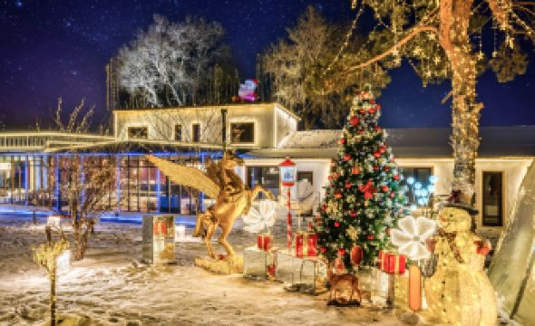 Who can say no to a charming courtyard lit up in the snow? The B&B's decor is incredibly thoughtful, with trees strung with fairy lights and a cute pink giant bear, making for amazing atmospheric photos at night. Stepping inside, you're greeted by a warm 'kang' (heated bed), which feels so cozy. The value for money is outstanding, I truly recommend it! 👍 A strong recommendation! This is hands down the best B&B in Northeast China. The night view of the courtyard is absolutely stunning, the fairy lights and giant bear make for fantastic photos, and the 'kang' inside is super warm. It was a really comfortable stay, and I'll definitely choose this place again next time!