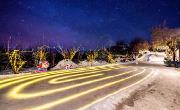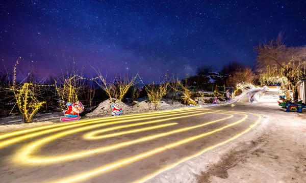 ❄️ The slide carries childhood fun rushing down the carrot-nosed snowman greets guests in a row, and a cup of steaming frozen pear tea by the bonfire;