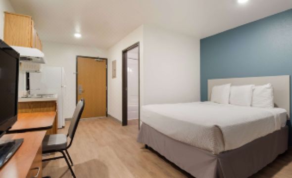 I had a bad experience I had to booking one was a week and the other was a weekend stay. With both only stayed one day. Kitchen stove was stained and filthy. Bugs crawled. Blinds broken. Tv barely worked. Staff was horrible. Tried talking with manager and she was rude. Still haven’t heard anything back from them about my refund for the days I didn’t stay. Shower head was broken and had trash bags wrapped around them. Toilet was rusted. This is by far the worse hotel stay for me