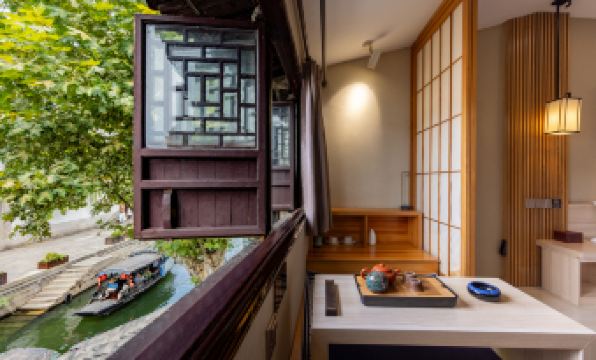 The former owner of the hotel, Liu Zhu, is the eldest brother of Liu Yong, the leader of the "Four Elephants" in Nanxun. The building was built in the Qing Dynasty, and the hall faces the river along the street. There are 4 king sized rooms on the 2nd floor of Linhe, with wedding dress performances during the day and projections at night, providing a panoramic view. The main building retains the original Chinese classical style, which is very suitable for parents and children. All room types come with double door balconies, offering exclusive views of the courtyard; The semi outdoor hot spring is located in the courtyard and blends seamlessly with the entire courtyard scenery, becoming a major feature of the homestay.