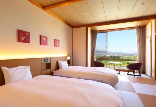 Room and View: The rooms are spacious, clean, and offer a view of the Tenryu River. Bedding includes a hot water bottle, ensuring comfort. The layout provides a serene environment for guests.