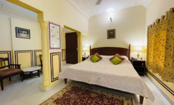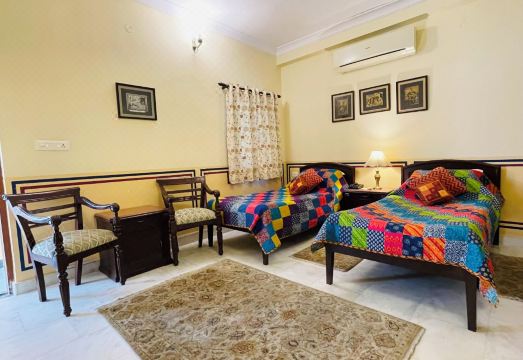 Fantastic experience at this beautiful haveli (stately home), run by the family who has lived there for generations. There is a rooftop terrace with sunset views over the Amber Fort and the old city of Jaipur, where you enjoy a drink while watching local children fly kites from their roofs. At one time each part of the family had a separate wing of the house around a central courtyard. Each room is unique, but all are decked out in marble with lovely Rajasthani art and photographs of the host family and the Rajahs and Maharajahs who they served. The meals were also excellent. We had planned to eat out for two of the three nights we were there, but we enjoyed the food so much the first night that we ate in for all three. You eat with other guests and the host family in a dining room filled with their collectibles and art, and are served by the family’s servants. The haveli occupies a block of the crowded Old City of Jaipur, surrounded by street life in all its noisy chaos, and handy for visiting all the local sights. Strongly recommended!