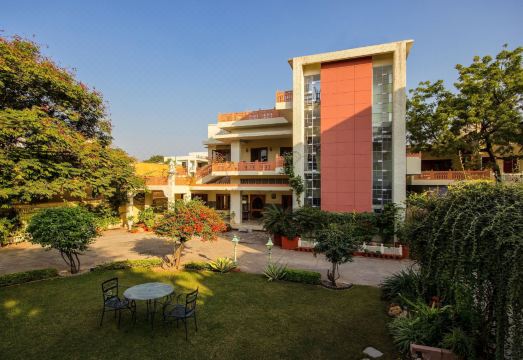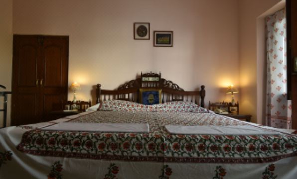 Garden and Atmosphere: Has a beautiful garden with peacocks, monkeys and other animals wandering around. The overall atmosphere is relaxing and homely, like a historical haveli with regional furniture, giving a heritage feel.