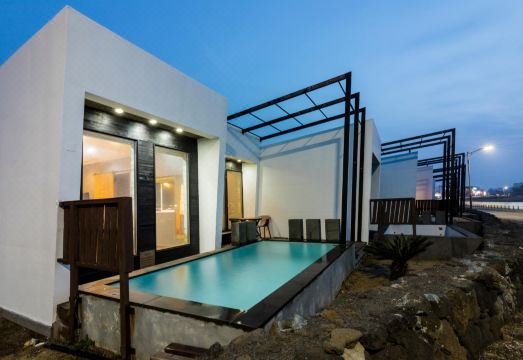 Aqua BEAutique is the world’s first scaled-down mini pool villa resort located in Jeju Island, Korea. Escaping to a luxury pool villa just to avoid stress bulid up isn’t just an easy option for everyone due to the expenses in Korea. Being aware of this problem, we have come up with a very easy solution for you. We have eliminated all the unnecessary facilities and reduced the size of the villa to provide you with an affordable price for it. Each Aqua BEAutique room provides a private mini pool with beautiful white tiles operated during all four seasons. Each room has a massive wide three sided clear ocean view, not to mention an emerald crystal beach no more than 200 yard away. With a stay at Aqua BEAutique in Jeju City (Gujwa), you'll be a 1-minute drive from Woljeong Beach and 7 minutes from Manjanggul Cave. This beach hotel is 4.7 mi (7.6 km) from Haenyeo Museum and 5.4 mi (8.7 km) from Sehwa Beach. Take advantage of recreation opportunities such as a seasonal outdoor pool or take in the view from a terrace and a garden. Additional amenities at this hotel include complimentary wireless internet access, concierge services, and a picnic area. Guests can catch a ride on the complimentary shuttle, which operates within 1 km. Take advantage of the hotel's room service (during limited hours). A complimentary full breakfast is included. Featured amenities include express check-out, multilingual staff, and luggage storage. A train station pick-up service is provided at no charge, and free valet parking is available onsite. Treat yourself to a stay in one of the individually decorated guestrooms, featuring private pools and LED televisions. Your memory foam bed comes with premium bedding. Rooms have private furnished balconies or patios. Complimentary wireless internet access keeps you connected, and cable programming is available for your entertainment.
