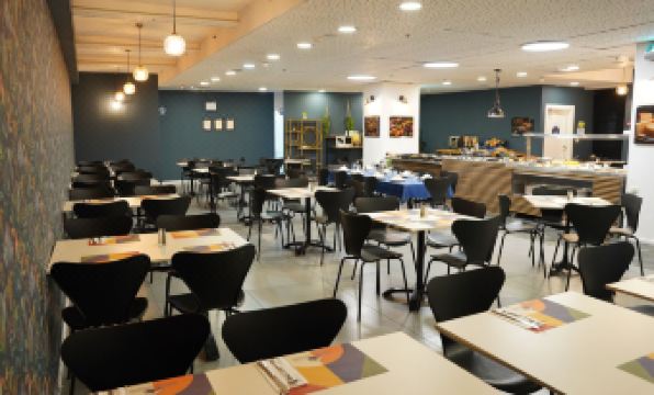 The location very good with most of places to eat, including a Mc Donald’s, very convenient for kids Parking available with cost but that’s rare, so it’s a plus. We had two connected rooms great for family travelers. The hotel in general is good, rooms are small but with everything you need even a fridge. The breakfast buffet has wide variety.