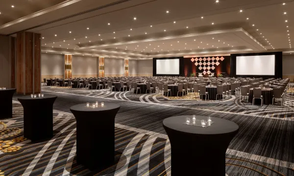 The perfect home base for Kansas City Chiefs fans and holiday travelers, our hotel is steps from T-Mobile Center and close to the Christmas Market, Kauffman Center shows, Crown Center lights—and just a short drive to Arrowhead Stadium. Stay in the heart of downtown Kansas City and walk to the Power & Light entertainment district, Kauffman Center, and T-Mobile. Our hotel is adjacent to the KC Convention Center. Spacious city view rooms and suites offer an ergonomic workspace, soundproof floor-to-ceiling windows, and Netflix-enabled 55-inch Smart TVs. Dog friendly rooms available. Five on-site dining options, including MetroKC, our signature American restaurant; BarCentral, featuring a massive 16-foot TV and group seating areas; and VOO Lounge, known for its craft cocktails and live entertainment. Host a conference, meeting, wedding, or social event in our 115,000 sqft. of flexible space featuring 43 venues with capacity up to 2200 guests and 1400 seated banquet guests.