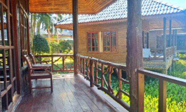 Отель понравился. Имеет эко стиль приближенный к природе: деревянные домики с просторными верандами на сваях над озером. Насекомых нет. Быстрый выход на отличный пляж. Инфраструктура рядом: 7-elevan, местная торговля, ресторанчики, есть кафе с европейской выпечкой, где можно позавтракать круассаном с горячим кофе, работающее с 8:00, что большая редкость для курорта. На пляже открытый массажный салон резортового курорта Chia Chet с очень хорошим персоналам во всех отношениях: мануальные техники, чистота белья, качество массажных столов, стильная форма.