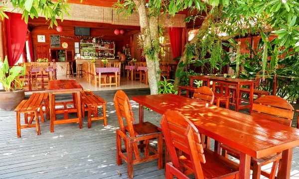 Very personable, smaller resort with well equipped, simple bungalows and a beautiful pool/bar area in well maintained "jungle garden." The best however are Kyle and his family; making you feel very welcome and helping you out where ever they can.