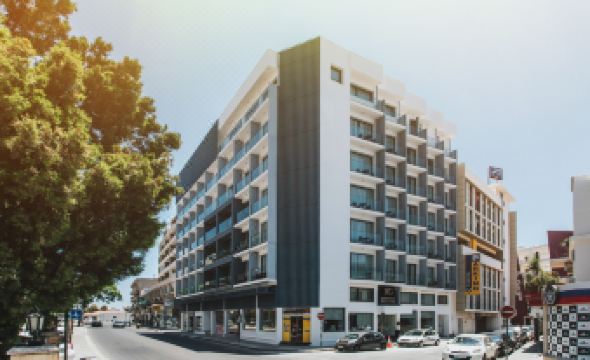 Accommodation & Amenities: Rooms are spacious, comfortable, and include balconies with views of the surrounding area or western mountains. On-site amenities include a rooftop pool, showers, and a sixth-floor terrace for breakfast with panoramic views of Larnaca.(based on 8 reviews)