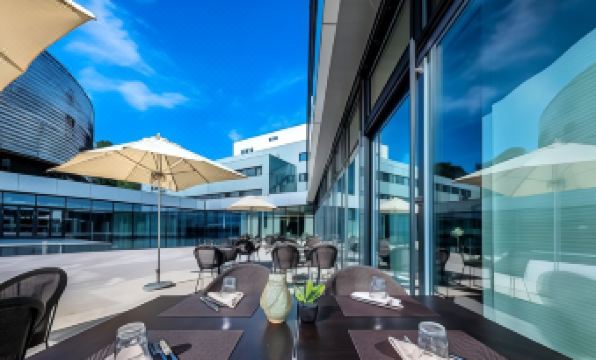 The restaurant, with its magnificent terrace, serves a varied cuisine and a snack menu available 24 hours a day. For seminars and business events, 12 fully-equipped conference rooms are available.