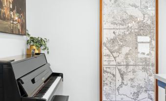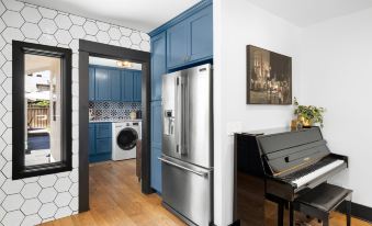step into a bright and airy living space featuring comfortable seating, stylish decor, and a piano, perfect for music lovers who want to play or enjoy some tunes during their stay. the newly renovated blue kitchen is fully equipped with everything you need to whip up a delicious meal, whether you’re cooking for a group or enjoying a quiet night in.