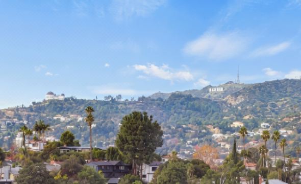 What are Skydeck 3-br house w gym, hot tub, amphitheater, Hwood sign, Griffith, lake view nearby landmarks?