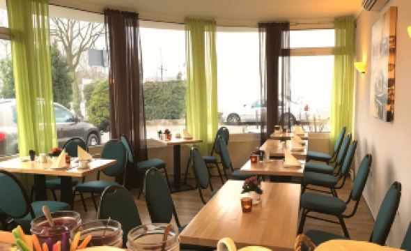 Een klein hotel dat aan een doorgaande weg ligt aan de buitenkant van Lubeck. We kwamen door de drukte op de weg pas om 18.30 u aan. We kregen via de bel contact en zo de code om binnen te komen. De sleutel lag op de kamer. Het Hotelchen is een wat gedateerd en eenvoudig klein hotel. De kamer was klein en zag er schoon uit, behalve de vloerbedekking die was echt smerig ( waarom niet gewoon een tegelvloer?) De badkamer was echt beneden pijl. Verf was afgebladderd, de voegen van de tegels waren los en daardoor niet schoon. Voor de terugweg weer geboekt en toen hadden we een iets grotere kamer en badkamer. Die er ook netjes uitzag maar die vloerbedekking was ook hier erg. Het ontbijt was eenvoudig maar alles was er en smaakte goed. Alleen tijdens het ontbijt hebben we mensen gezien die vriendelijk waren en het goed verzorgden.