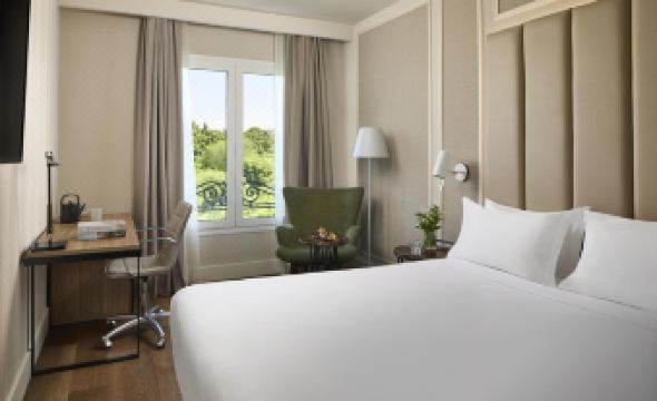 When staying at the NH Madrid Nacional hotel, you will be in a privileged location on Paseo del Prado and steps away from Madrid’s Art Triangle. The Prado, Thyssen and Reina Sofia museums are right by the hotel. The 1920s building was designed by the famous architect Modesto López Otero and is located across the street from the Atocha train station. This means it provides excellent links to everywhere in the city, including the airport. NH Madrid Nacional has 206 rooms with a choice of classic or contemporary designs. Each features sleek wooden floors and free Wi-Fi. Some of the rooms come with views of the Atocha Plaza or the Botanical Gardens, while Superior rooms have Nespresso machines, among other extras. The Tablafina restaurant serves up light bites and Mediterranean and Spanish dishes, which you can enjoy along with the lovely city view. Breakfast is also served and includes a wide variety of fresh fare including cooked-to-order eggs. A gym is available on-site. For meetings, there are 6 function rooms for up to 150 people, where catering can be arranged. On Sundays, sleep in and enjoy our free late checkout and breakfast served till noon.
