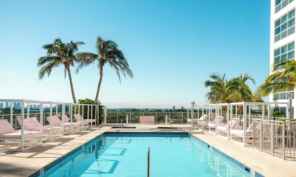 We stayed in a small suite with two bathrooms and a small balcony with a harbor view. The beach was very quiet. The pink color was very pretty. It was very photogenic. The facilities were a bit old. Hotels in Miami are generally older.