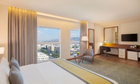 The Wyndham Garden Muscat is Al Khuwair Area located over Al Nawras business center large shopping areas ministries embassies Banks and historical sites. Our hotel features 143 air-conditioned rooms and Suites from 30 SQM . Facilitated with free high speed WIFI. All rooms are equipped each with a desk mini bar and teacoffee making facilities safety box flat-screen TV. Each room has a private bathroom with a shower or bathtub and free toiletries. Hotel offers wellness area with gym sauna and steam room indoor and outdoor pools along with a seperate recreation area for ladies.
