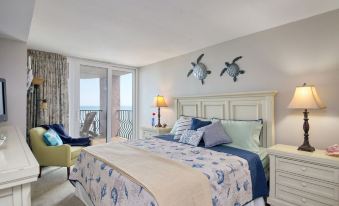 POOL/JACUZZI OPEN! FAMILY/KID FRIENDLY 1200 sf unit has a spacious King BR & BA w large balcony; a Queen BR w beach views; a cozy 3rd BR sure to delight kids, grand-kids & young at heart w twin & bunk beds! Stunning panoramic views! Unwind with your toes in the sand & surf. Discover your own quaint shops, amazing eatery, or visit Myrtle Beach's many attractions, all within easy walking distance. This bright & airy unit holds up to 9 guests!