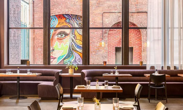 Daily Mandatory Destination Charge includes: Premium guest internet access; daily $10 food and beverage credit; curated, rotating art tour; one La Colombe coffee from Gray & Dudley per day; yoga classes in art gallery; Press Reader access. Uniquely positioned in the heart of downtown Nashville, our art-filled hotel overlooks the gorgeous East Bank and is steps away from Broadway's entertainment district on Nashville's revitalized Second Avenue. We are within a mile of top attractions like Nissan Stadium, Bridgestone Arena, and the historic Ryman Auditorium.