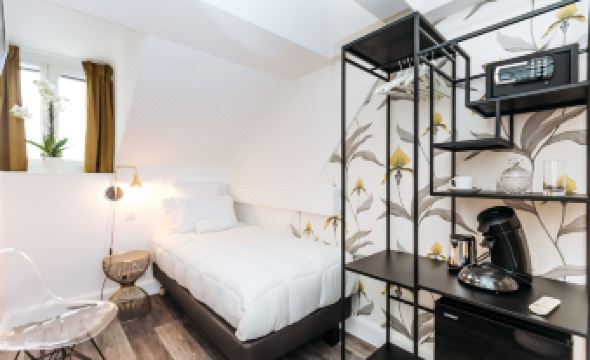 A wonderful boutique hotel. The rooms aren't very large, but for a solo traveler, they're a godsend. The promenade is nearby, and all public transportation is just steps away. The rooms are clean and tidy. There's a coffee machine, a kettle, and a fresh croissant awaits you in a bag at the door every morning. The staff is very attentive. Always smiling and always willing to help. If I return to Nice, I'll definitely be there.