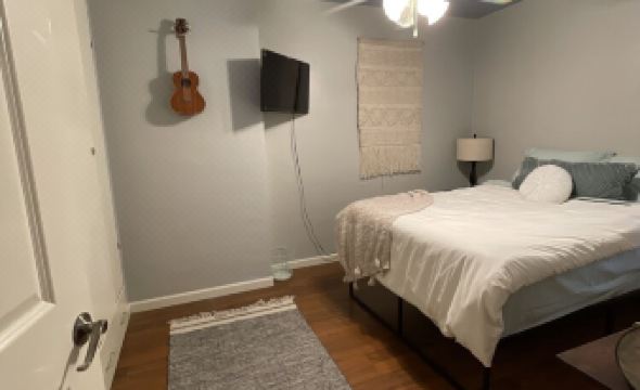 This is a cute Mid-Century home. With a great private backyard equipped with a bbq and fire pit. perfect place to just relax in the evening or enjoy your morning coffee. When the weather is nice outside take dinner outdoors to the large outdoor dining area. Or belly up to a custom built living edge bar top and enjoy a nightcap under the twinkle lights. We offer a adorable kitchen with a large farmhouse sink and quartz countertops. It has all the things you’d need to prepare any meal. The Bathroom includes shampoo, conditioner and body wash. The bedrooms on the upper level are furnished with tvs ready to stream, just log into your favorite provider Netflix, Hulu, HBO, etc… there is a on premise laundry provided we provide hypoallergenic detergent that is free of dyes and fragrance for those sensitive to them. We have chickens! Enjoy fresh eggs when the gals are laying. We also compost, so go ahead and throw what ever organic refuse you’d like into the compost pile.About pets:No pets allowed.About checkOut:Check out before 11:00 AM.About children:Children allowed: ages 0-17.About checkIn:Check in after 3:00 PM.About smoking:Smoking allowed: in designated areas.About minBookingAge:Minimum age to rent: 24.About events:No events allowed.